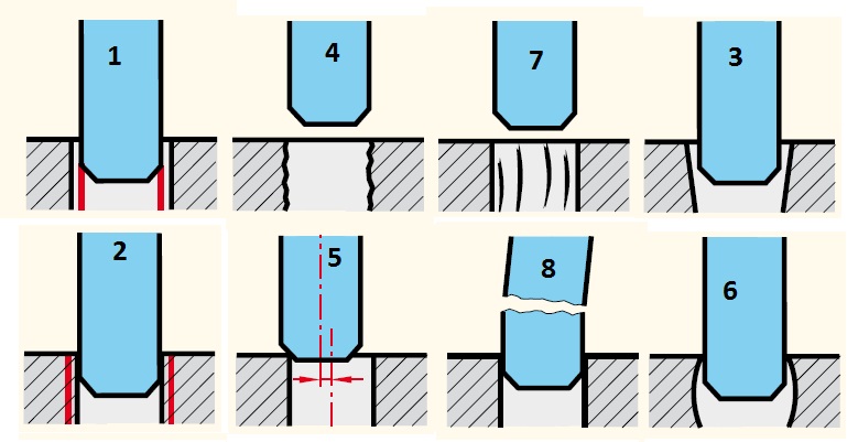 • осевое смещение между инструментом и предварительным отверстием.Необходимо применение плавающего патрона.