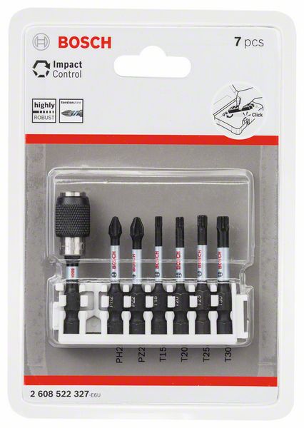 Набор из 7 бит для шуруповерта Impact Control, 1 шт. PH2, 1 шт. PZ2, 1 шт. T15, 1 шт. T20, 1 шт. T25, 1 шт. T30