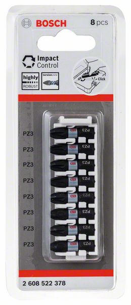 Набор из 8 бит для шуруповерта Impact Control, 1 шт. PH1, 3 шт. PH2, 1 шт. PH3, 2 шт. PZ2, 1 шт. PZ3