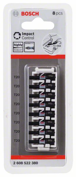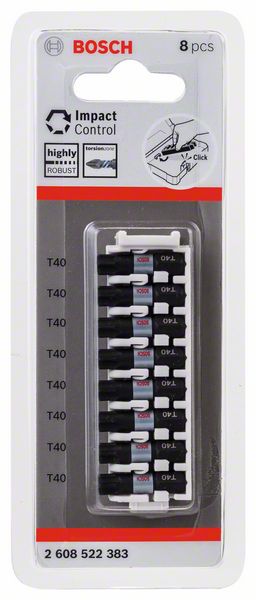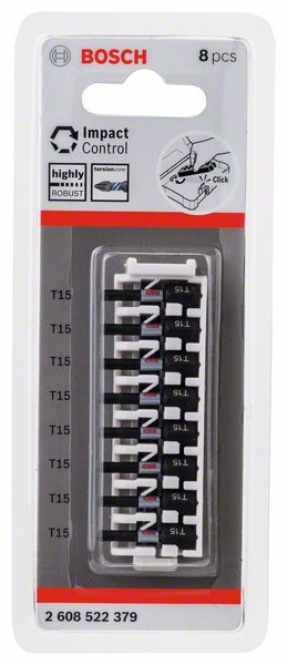 Набор из 8 бит для шуруповерта Impact Control, 1 шт. T15, 2 шт. T20, 2 шт. T25, 2 шт. T30, 1 шт. T40