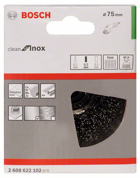 Чашечная щетка с волнистой проволокой из нержавеющей стали, 75 мм 75 mm, 0,3 mm, M14