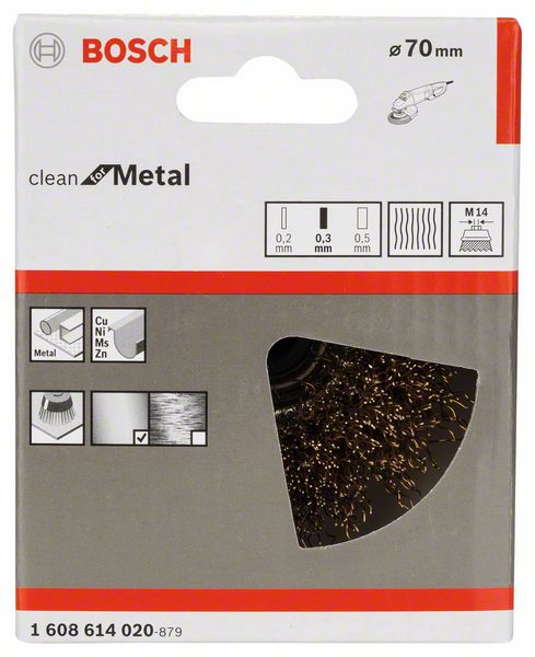 Чашечная щетка с волнистой проволокой с латунным покрытием, 70 мм 70 mm, 0,3 mm, M14