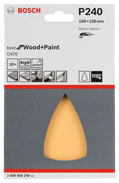 Шлифлисты C470 для дельташлифмашин, Best for Wood and Paint, 100x150 мм, 7 отверстий