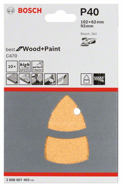 Шлифлисты C470 для мультишлифмашин, Best for Wood and Paint, 102x62, 93 мм, 11 отверстий