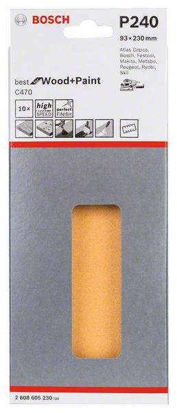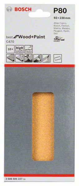 Шлифлисты C470 для виброшлифмашин, Best for Wood and Paint, 93x230 мм, 8 отверстий