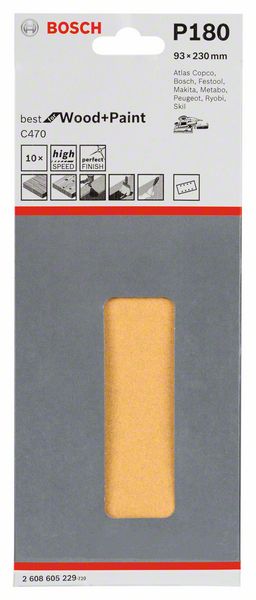 Шлифлист C470, в упаковке 10 шт. 93 x 230 mm, 180