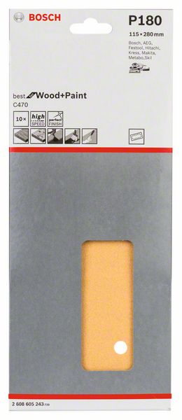 Шлифлист C470, в упаковке 10 шт. 115 x 280 mm, 180