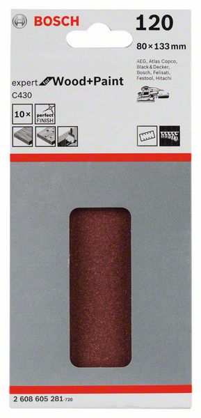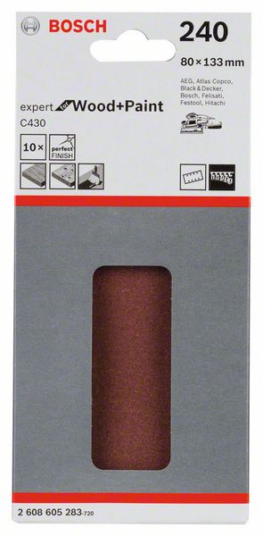 Шлифлисты C430 для виброшлифмашин, Expert for Wood and Paint, 80x133 мм, 8 отверстий