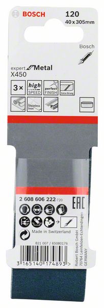 Набор из 3 шлифлент X450 40 x 305 мм, 120