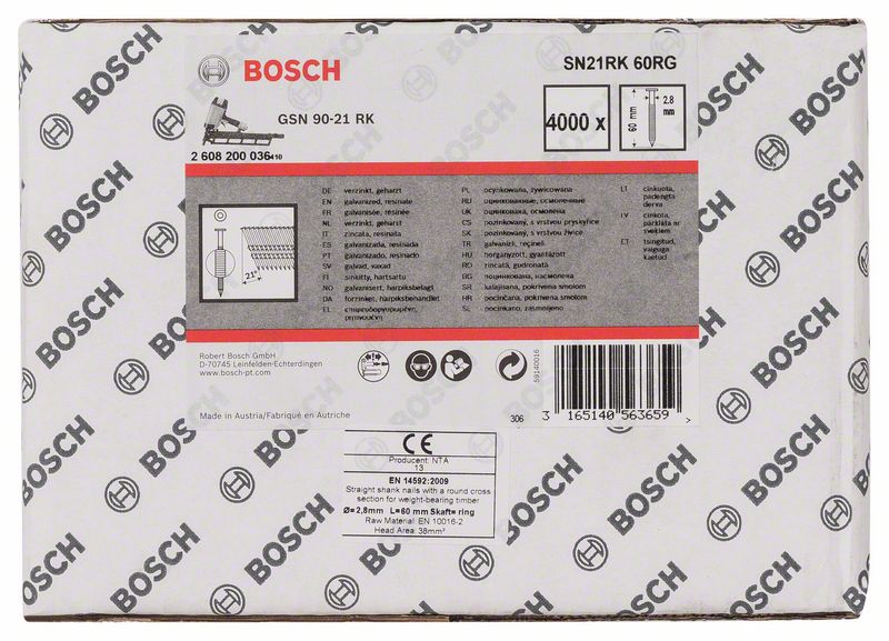 Гвоздь с круглой головкой SN21RK 60RG 2,8 мм, 60 мм, оцинк., рифл.