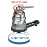 При затяжке использовать динамометрический ключ, входной момент считывается с ключа, выходной момент умножается на указанное в инструкции усилителя соотношение.