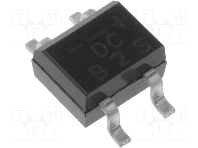 Однофазный выпрямительный мост; Urmax: 200В; If: 0,5А; Ifsm: 30А
