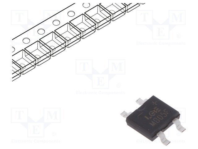Однофазный выпрямительный мост; Urmax: 50В; If: 0,5А; Ifsm: 35А