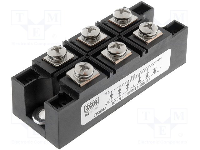 Трехфазный диодный мост; Urmax: 1,6кВ; If: 160А; Ifsm: 1,43кА; MT-K