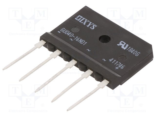 Трехфазный диодный мост; Urmax: 1,6кВ; If: 40А; Ifsm: 370А; GUFP