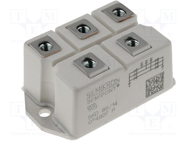Трехфазный диодный мост; Urmax: 1,4кВ; If: 80А; Ifsm: 750А; винтами