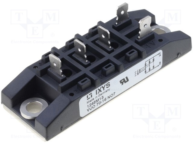 Трехфазный диодный мост; Urmax: 1,6кВ; If: 70А; Ifsm: 550А; FO-T-A