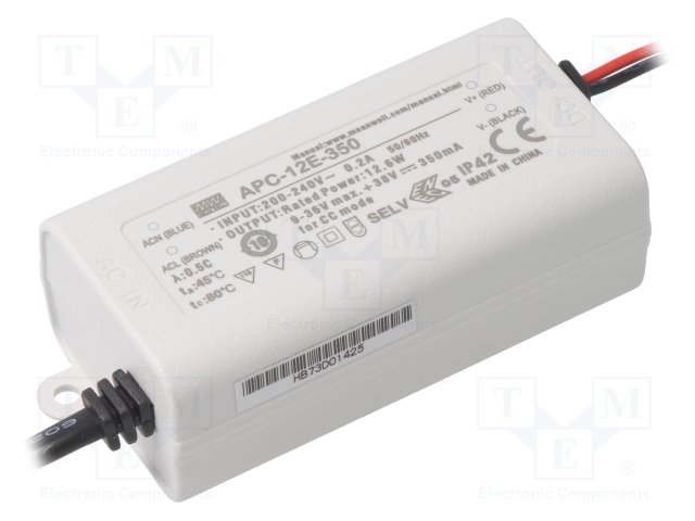 Блок питания: импульсный; LED; 12,6Вт; 9÷36ВDC; 350мА; 180÷264ВAC