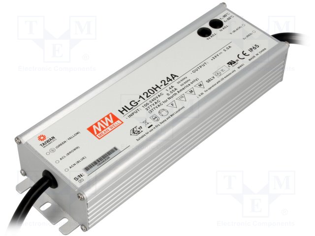 Блок питания: импульсный; LED; 120Вт; 24ВDC; 22÷27ВDC; 2,5÷5А; IP65