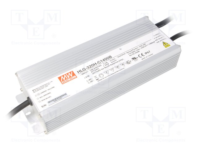 Блок питания: импульсный; LED; 320Вт; 114÷229ВDC; 1400мА; IP67