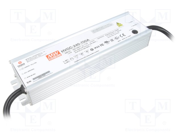 Блок питания: импульсный; LED; 240Вт; 171,4÷342,8ВDC; 350÷700мА