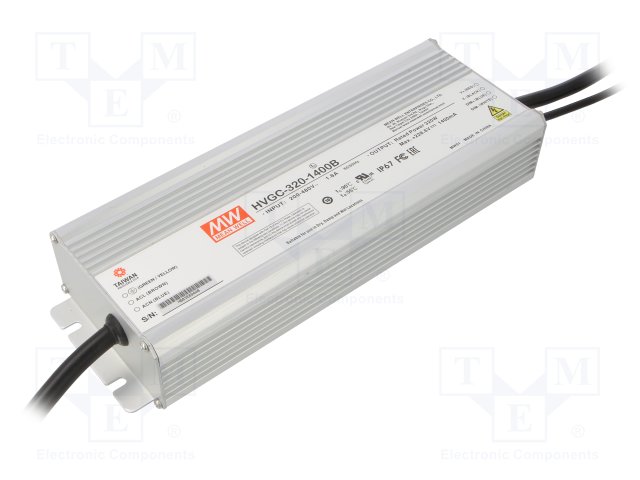 Блок питания: импульсный; LED; 320Вт; 114,3÷228,6ВDC; 1400мА; IP67