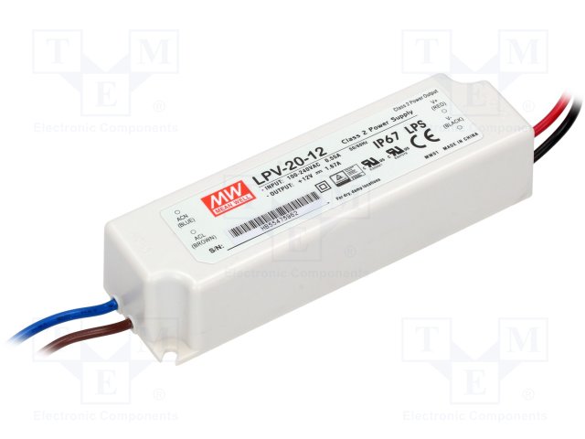 Блок питания: импульсный; LED; 20Вт; 12ВDC; 1,67А; 90÷264ВAC; IP67