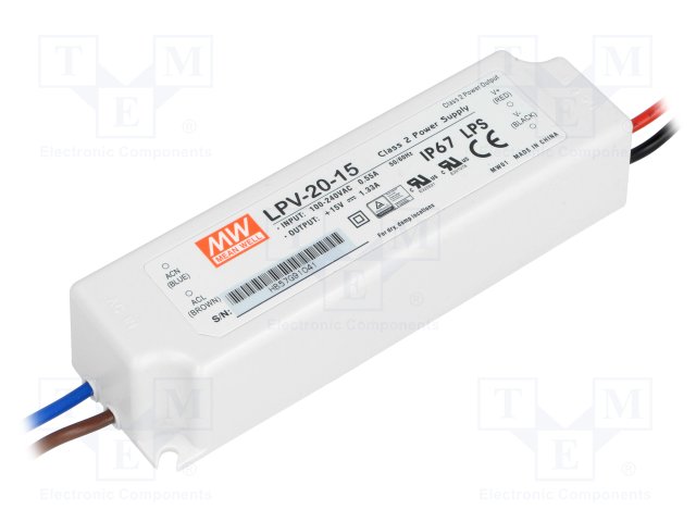 Блок питания: импульсный; LED; 20Вт; 15ВDC; 1,33А; 90÷264ВAC; IP67