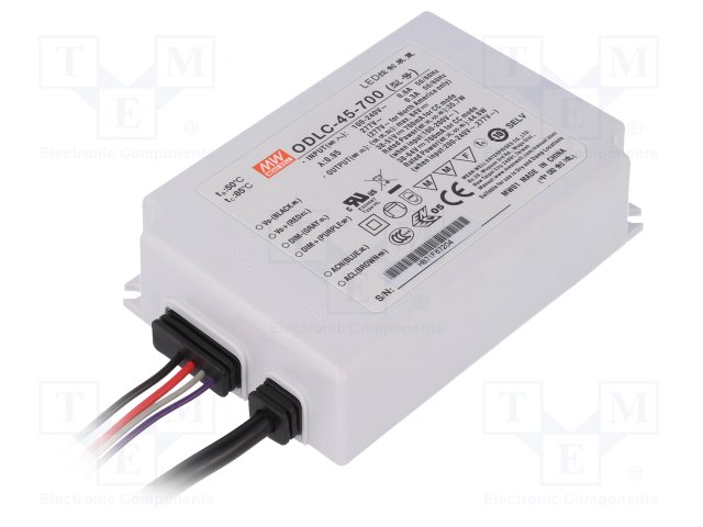 Блок питания: импульсный; LED; 45Вт; 38÷64ВDC; 700мА; 90÷295ВAC