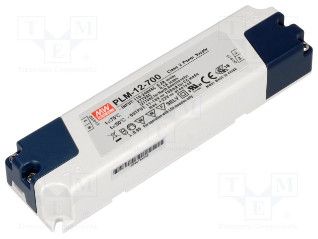 Блок питания: импульсный; LED; 12,6Вт; 11÷18ВDC; 700мА; 110÷295ВAC
