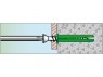 Пластмассовый дюбель снабжен крыльями, препятствующими его проворачиванию при вкручивании шурупа. Дюбель изготовлен из полиэтилена и выдерживает температуру от -50°C до +80°C.