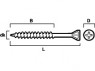 Шуруп изготовлен из закаленной стали, с хромированной поверхностью желтого цвета. Имеет головку Phillips с крестообразным шлицем Ph2. Головка шурупа снабжена четырьмя режущими пазами, которые заглубляют шуруп и оставляют ровную поверхность без расщепления.