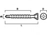 Шуруп изготовлен из закаленной стали с поверхностью, оцинкованной до блеска. Шуруп имеет головку Phillips с крестообразным шлицем Ph2.