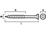 Шуруп изготовлен из закаленной стали, с хромированной поверхностью желтого цвета. Шуруп имеет головку TX. Головка шурупа снабжена четырьмя режущими пазами, которые заглубляют шуруп и оставляют ровную поверхность без расщеплений.