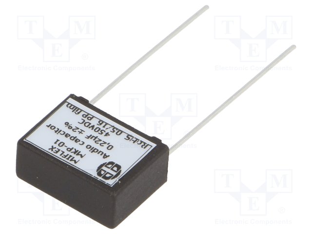 Конденсатор: полипропиленовый; 0,22мкФ; 450ВDC; 15мм; ±2%; 0,002