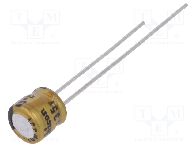 Конденсатор: электролитический; THT; 10мкФ; 35ВDC; Ø5x5мм; Шаг: 2мм