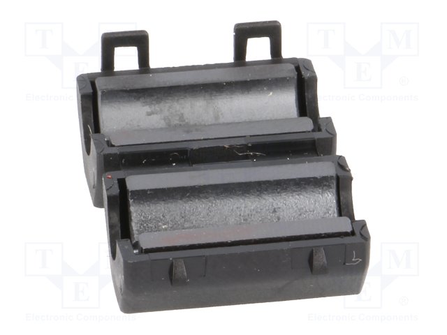 Характеристики ферритов защелка-фиксатор для многократного монтажа и демонтажа, монтаж на сетевой кабель, ослабляют электромагнитные помехи, пластмассовый корпус