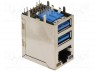 Гнездо; USB A x2 + RJ45; на PCB; THT; угловой 90°; двойное