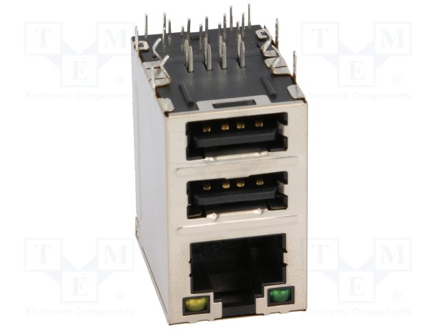 Гнездо; RJ45 + USB A; THT; PIN: 8; угловой; защелка вверху