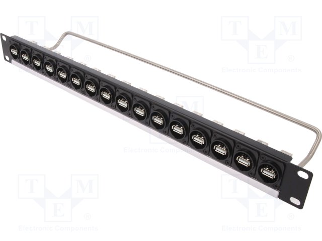Patch panel; USB A; винтами; RACK; M3; Размер: 19",1U