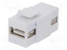 Гнездо; соединитель; 2x "мама"; гнездо USB A x2; прямой; защелка