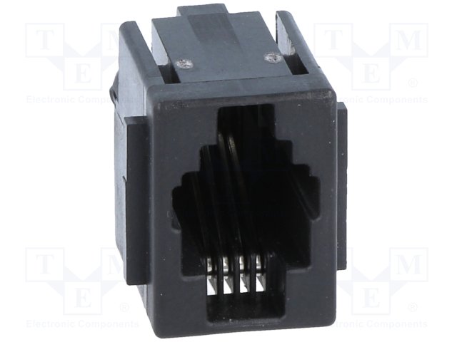 Гнездо; RJ9; PIN: 4; со стопором панели; Конфиг.выводов: 4p4c; THT