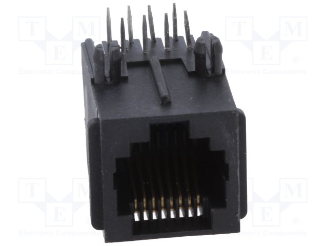 Гнездо; RJ45; PIN: 8; Кат: 5; Конфиг.выводов: 8p8c; THT; угловой