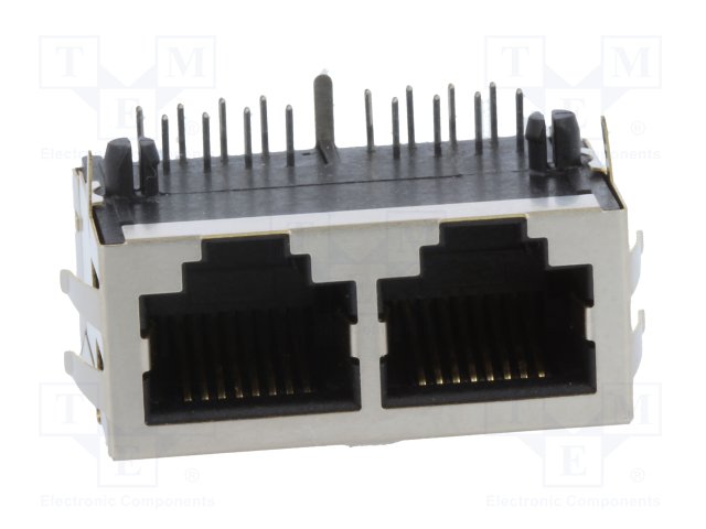 Гнездо; RJ45; PIN: 8; Кат: 5; Конфиг.выводов: 8p8c; THT; угловой