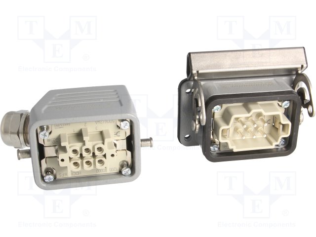 Разъем: HDC; "папа" + "мама"; гнездо + вилка; HE; PIN: 6; 6+PE; M20