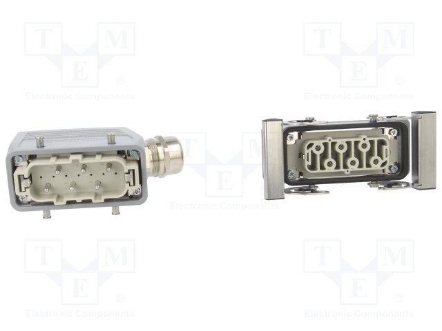 Разъем: HDC; "папа" + "мама"; гнездо + вилка; PIN: 6; 6+PE; угловой