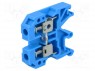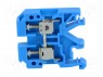 Соединитель: на рейку; 6мм2; Кол-во полюс: 1; клеммы: 2; синий; 41А