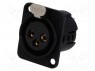 Гнездо; XLR; "мама"; PIN: 3; прямой; пайка; позолота; 50В; 15А; 14AWG