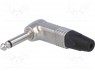 Вилка; Jack 6,3мм; "папа"; mono; угловой 90°; на провод; пайка