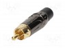 Вилка; RCA; "папа"; короткий; прямой; пайка; черный; позолота; 3÷7мм